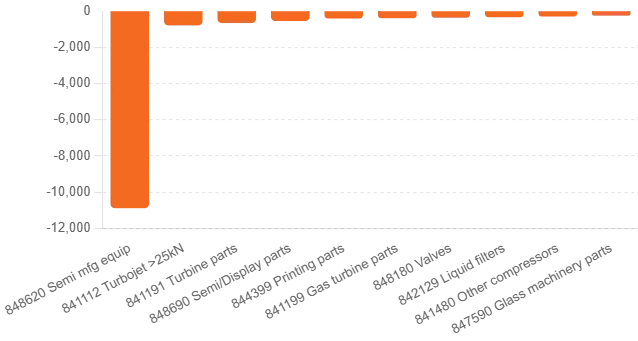 Korea: Top 10 Machinery Trade Deficits (2023)